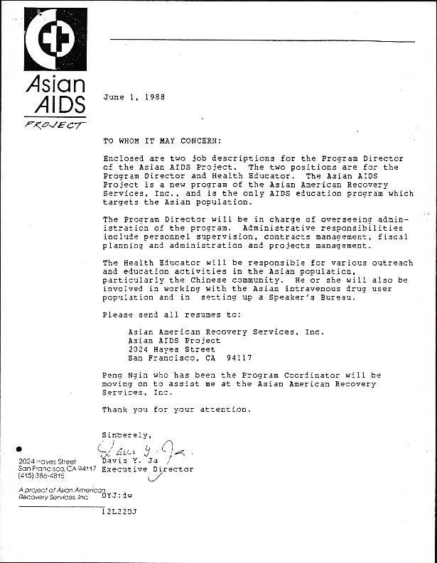 Job Description Job Title Family Partner Organization Asian American Recovery Services Inc Aars Inc Program Dept San Ma